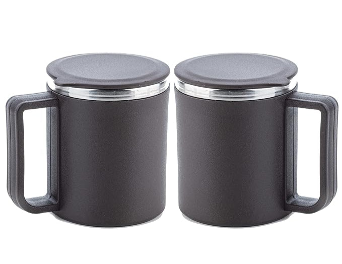 Stainless Steel Coffee & Tea Mug Set – 220ml (Pack of 2) with Lids